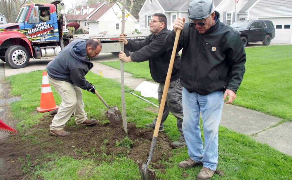 Gowanda observed Arbor Day on April 30 by planting 10 trees in residential areas across the village. The village recently was awarded Tree City USA designation for the 22nd straight year. To date, more than 1,000 trees have been planted since the Re-Leaf Gowanda program began in 2001. Here volunteers and village personnel plant an Autumn Blaze Maple.