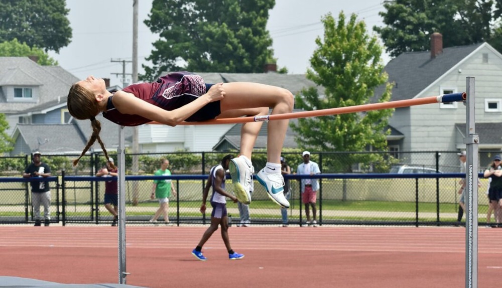 Chautauqua Lake's Jada Cole clears the bar to win the high jump at the Section VI track and field state qualifier on Saturday at Bill Race Field at Falconer High School. OBSERVER Photo by Christian Storms